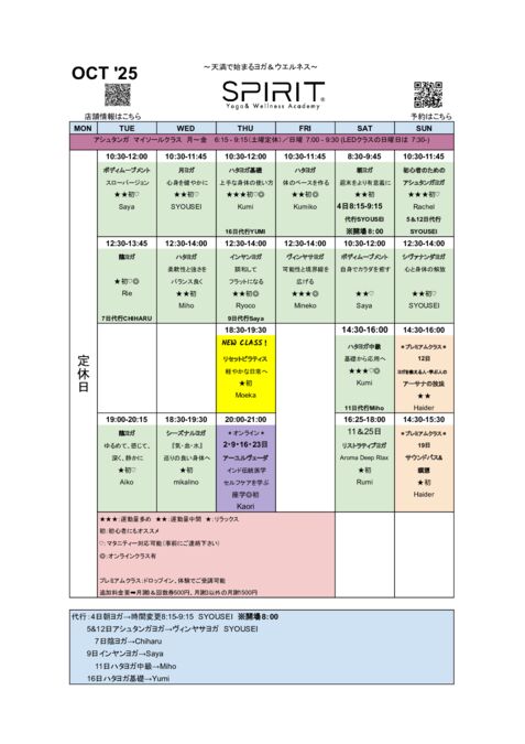 ・9日インヤンヨガ→Saya(オンラインクラスはございません)